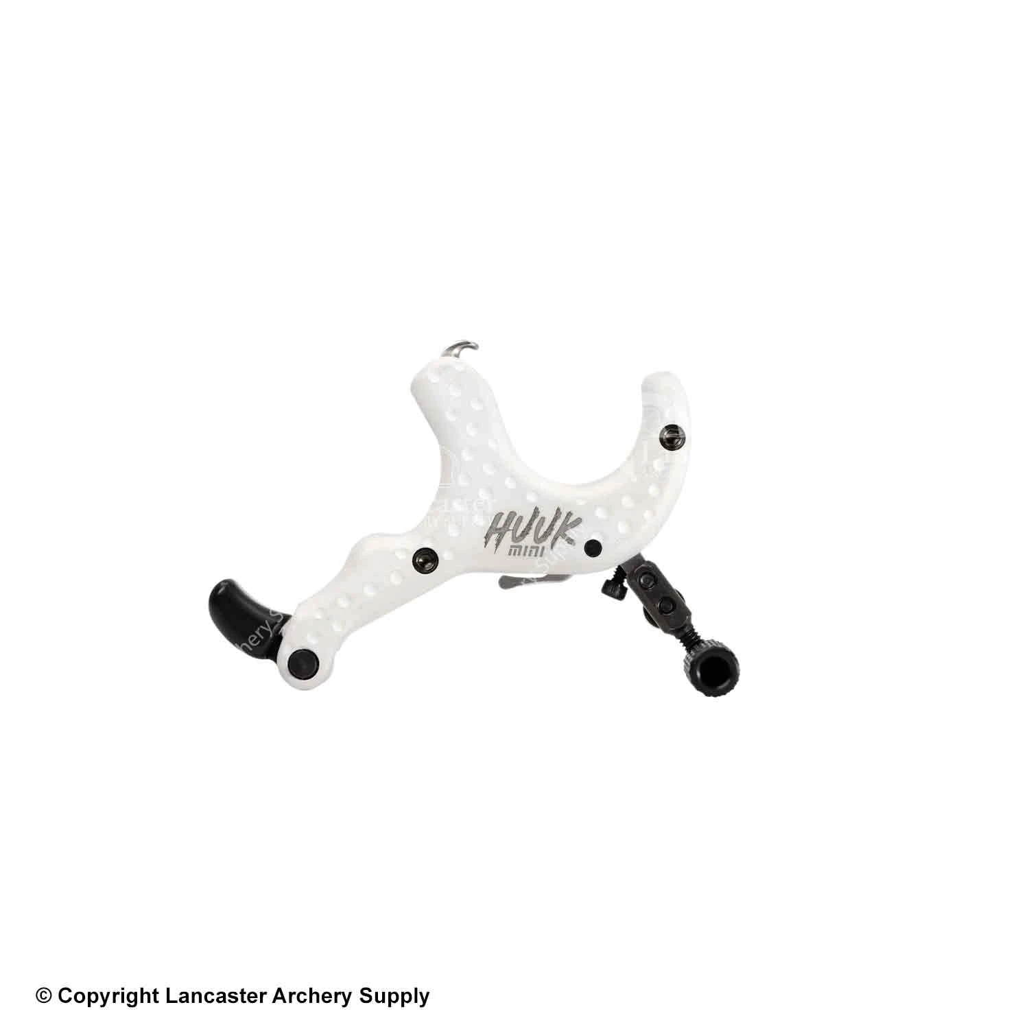 The Huuk is an open hook multi-sear thumb button release. The handle is a fully radiused two-piece patented system that allows you to rotate the finger attachments for a custom fit. Other features include an optional wrist strap connection, fully adjustable thumb post position, as well as travel and tension adjustments. The Huuk’s design includes a base system that holds the sears in place, producing the best-performing open hook thumb trigger.